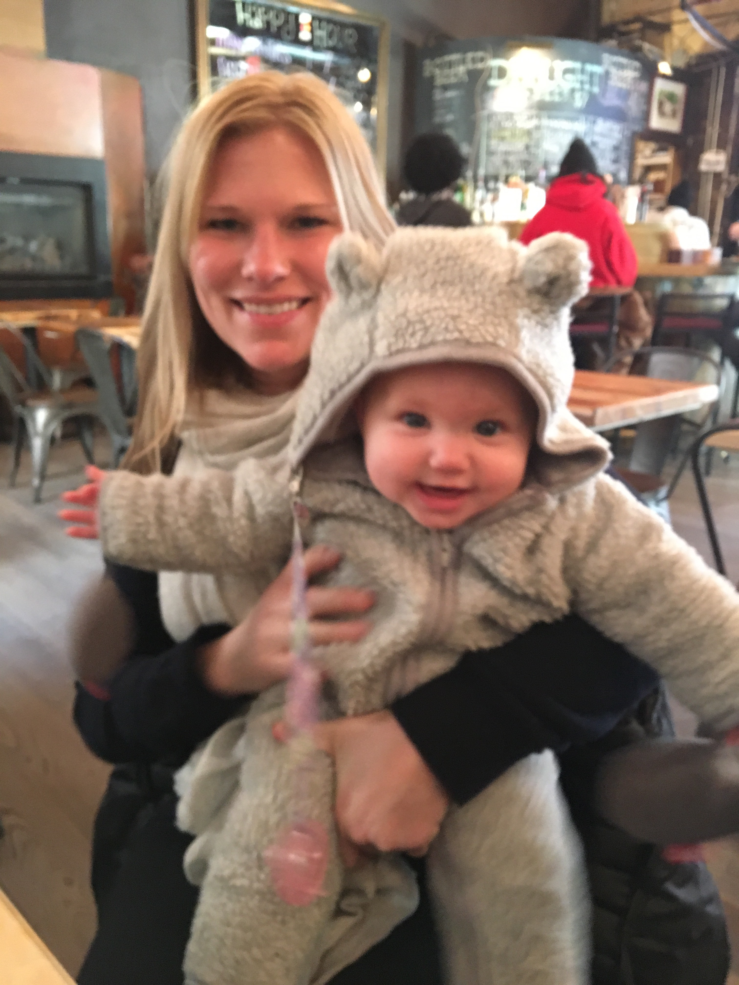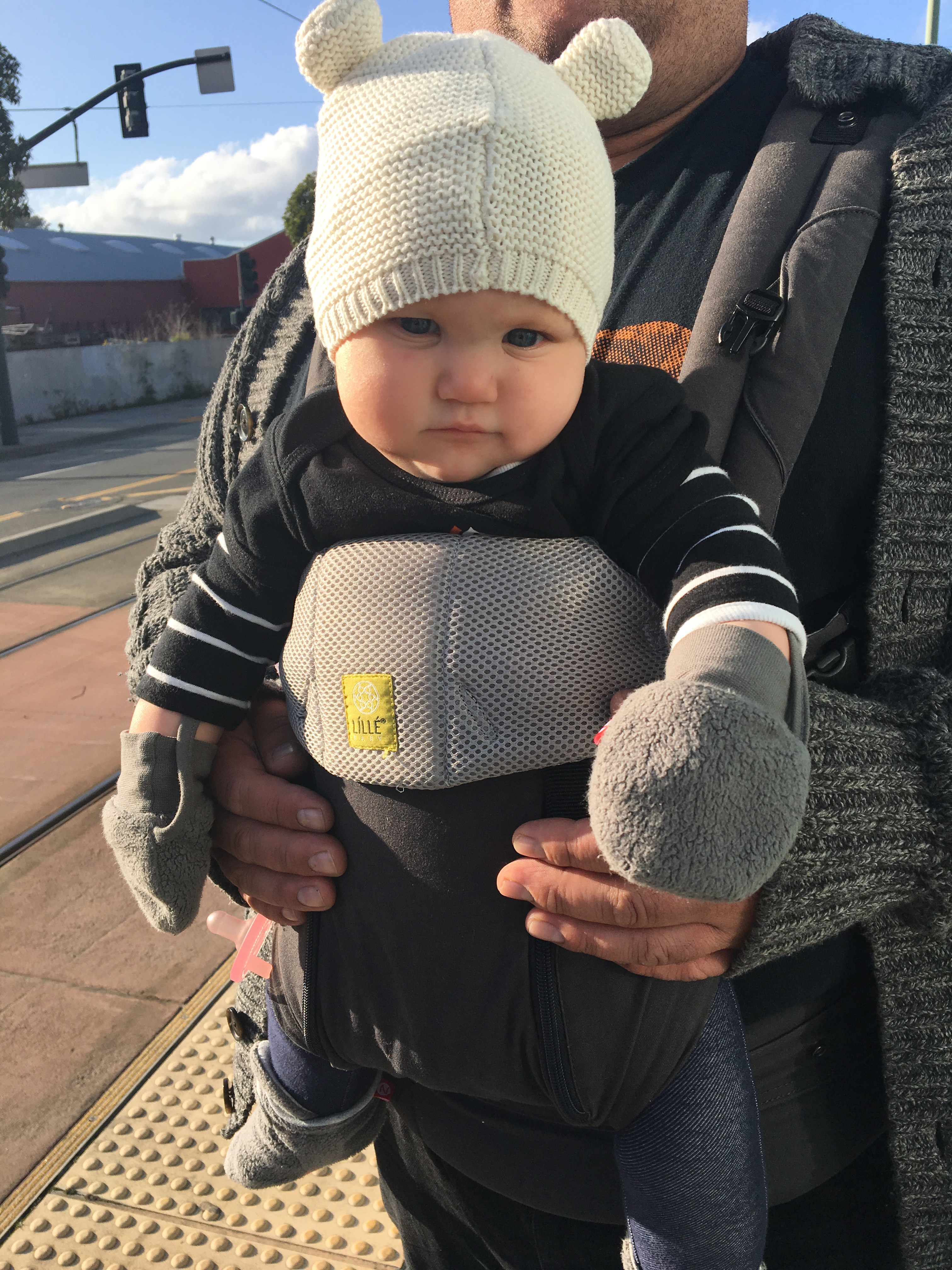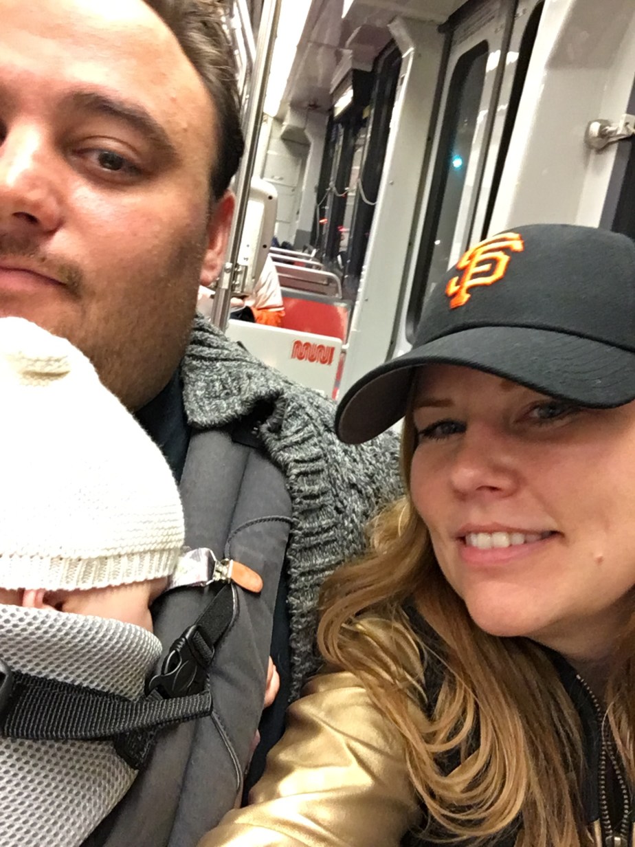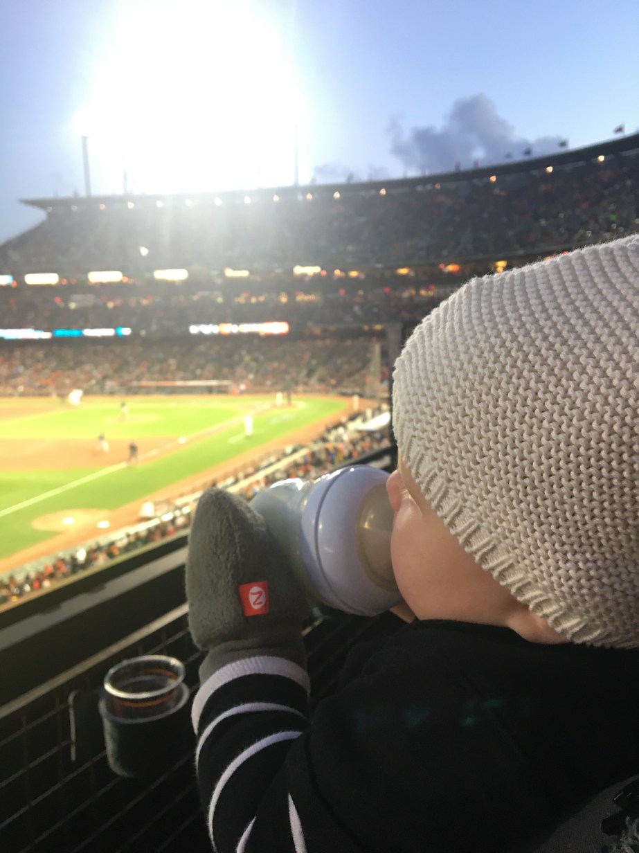We had been watching games all week on tv in anticipation. She was dressed in many layers including her new Posey onesie. And off we went to her first Giants game.