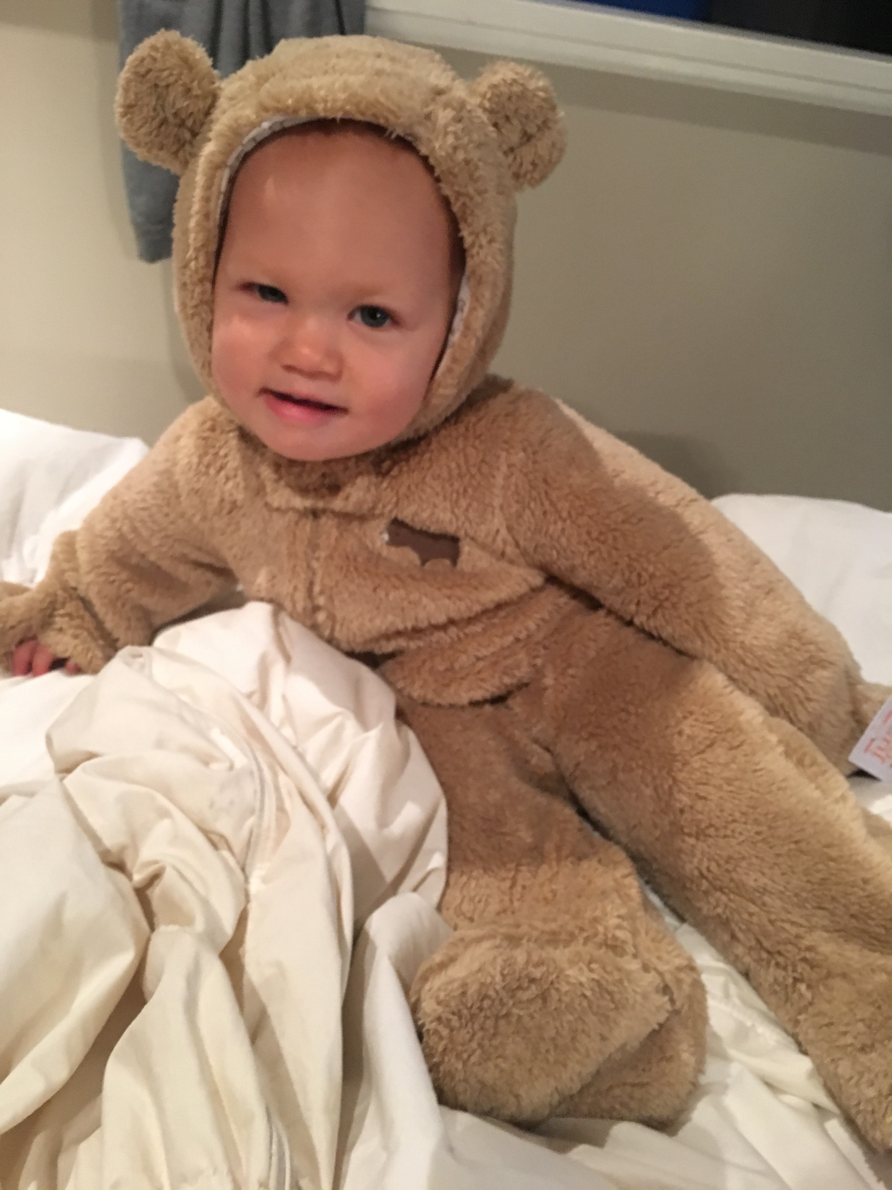 Unlike last year, we decided to make Olive’s costume this time. It started with this bear outfit.