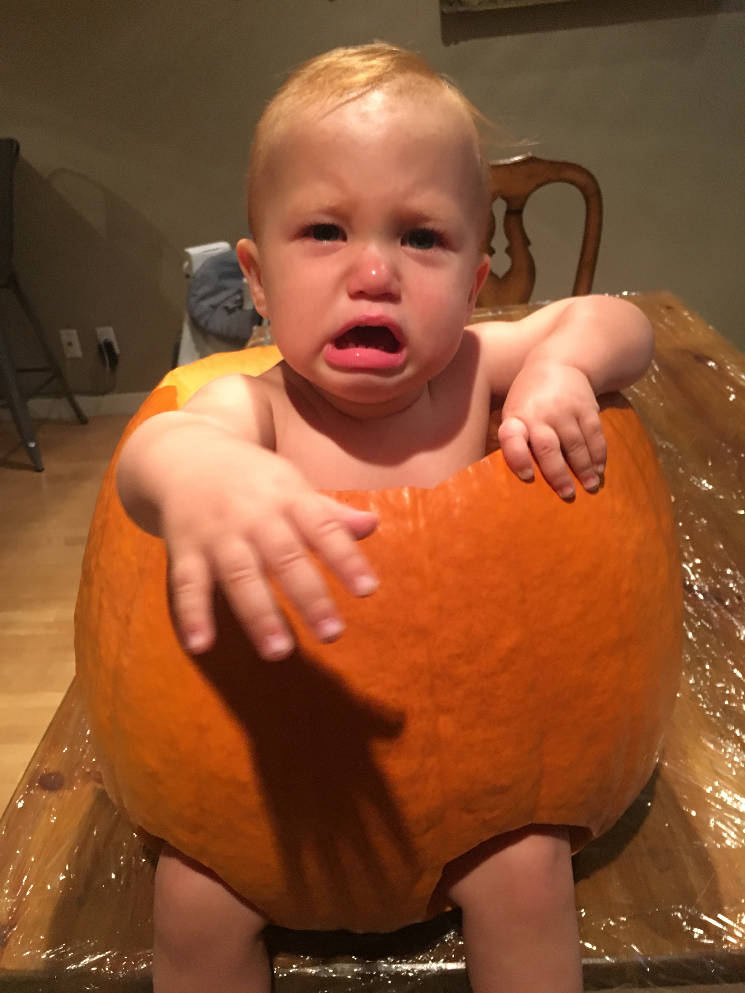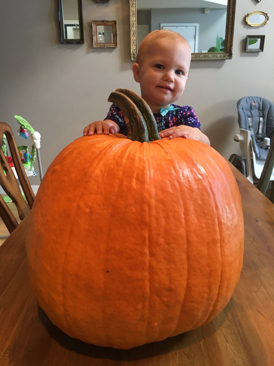 We were on a hunt to find a pumpkin large enough for our little lady to fit inside of.