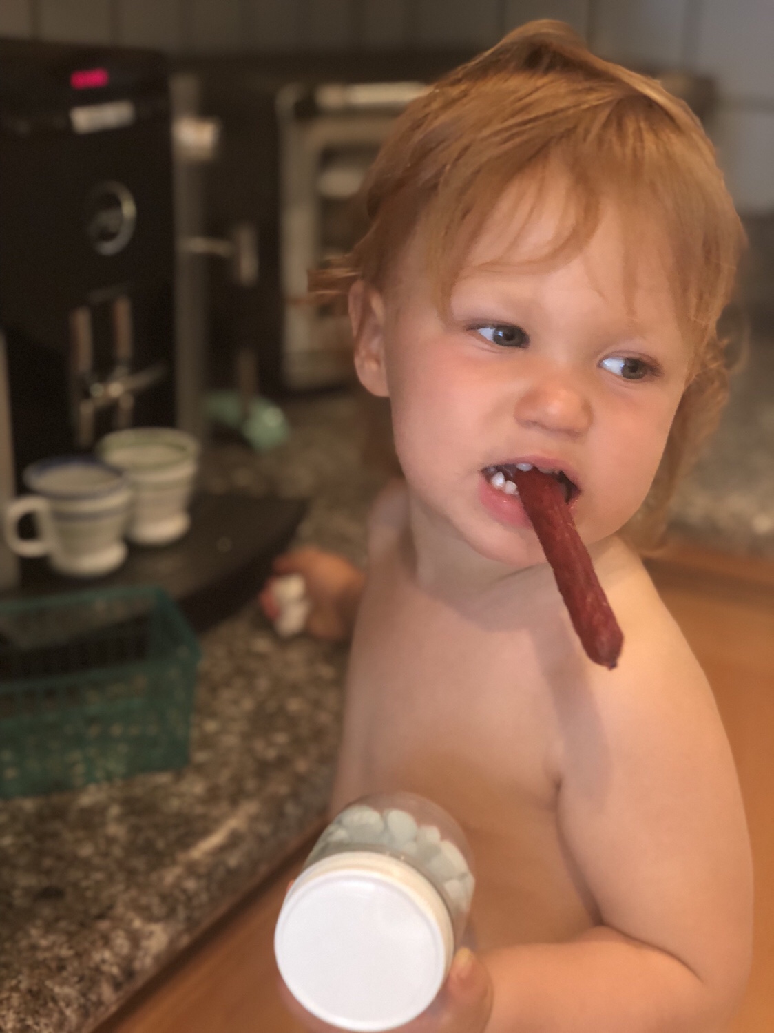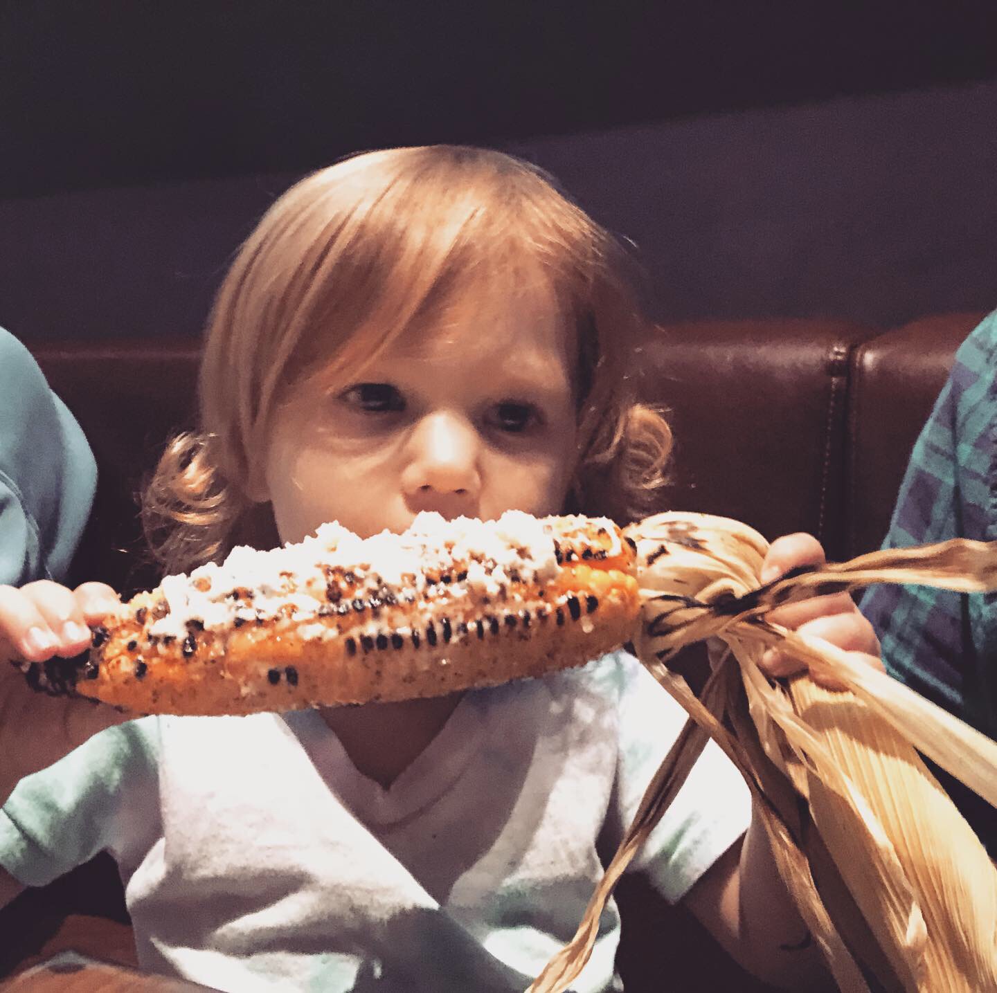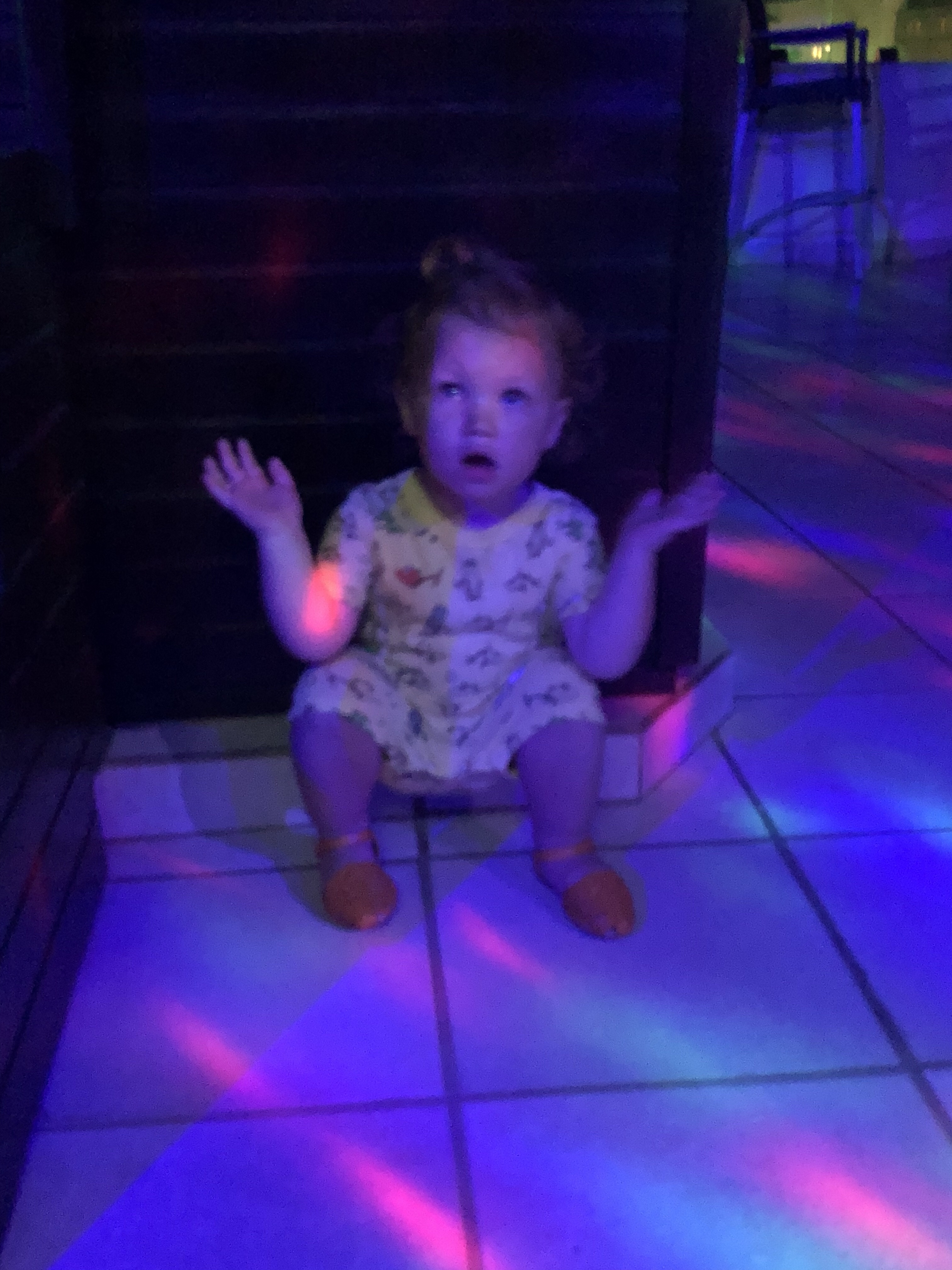 Olive’s first piña colada. No booze and surprisingly no brain freeze.