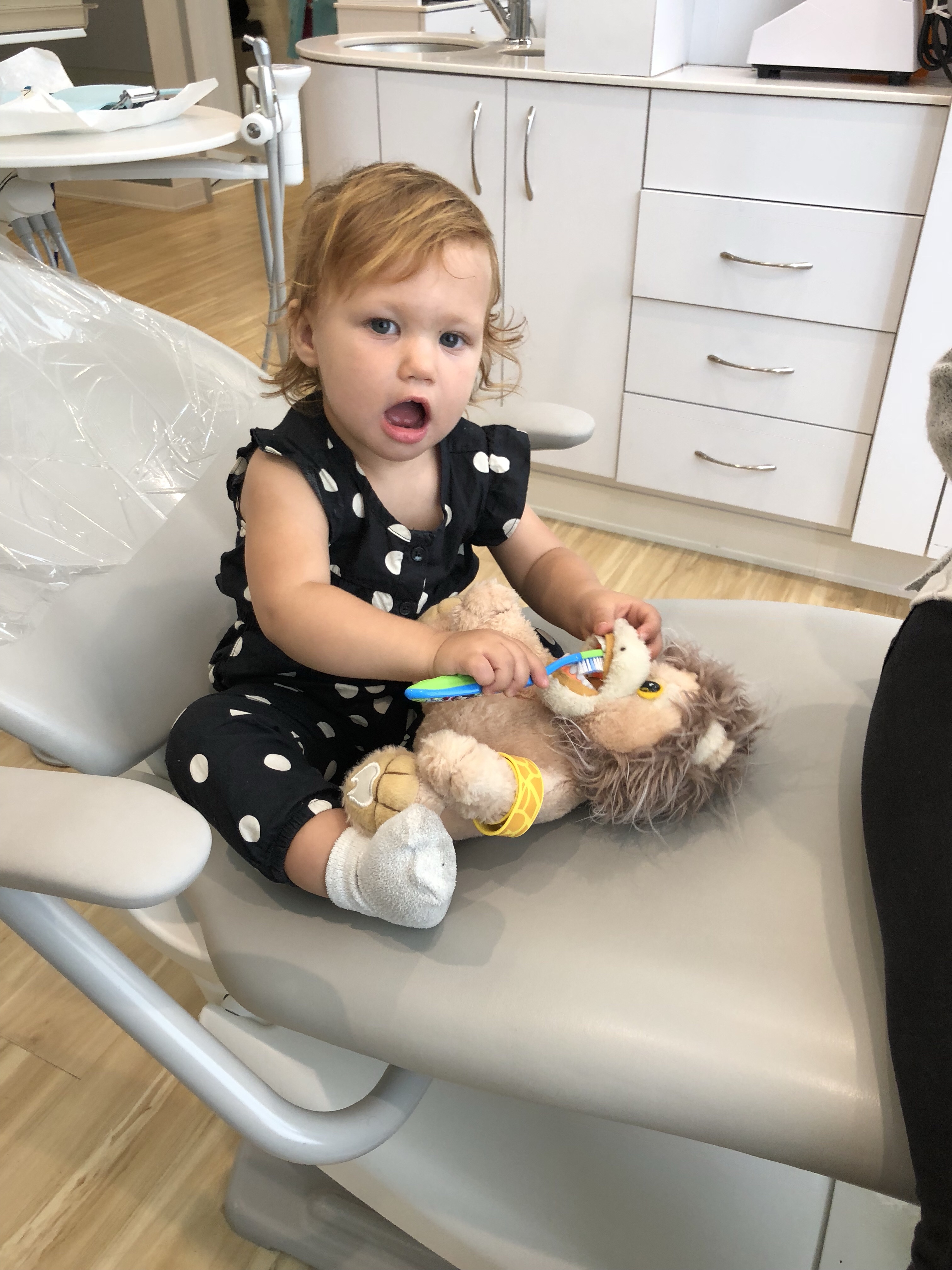Olive went to the dentist. She brushed a lions teeth and went through all of the cabinets.